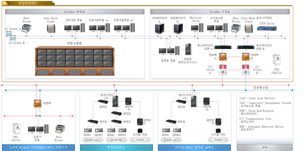 상위 급전분소 SCADA 시스템으로 전송하는 전력 설비 통합감시제어시스템입니다.